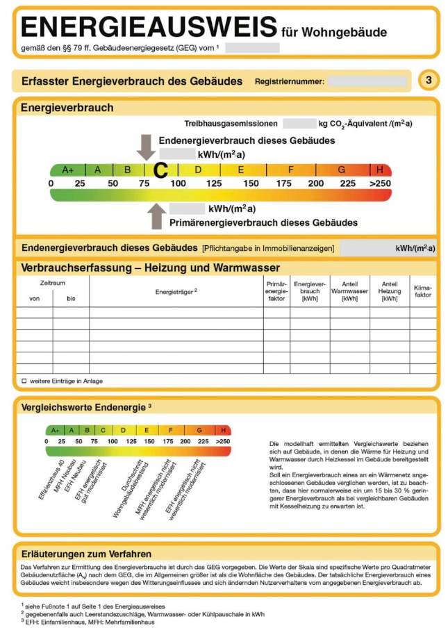 Ebenfalls Pflicht bei Verkauf, Vermietung oder Verpachtung – zeigt die energetische Qualität unabhängig vom Nutzerverhalten.